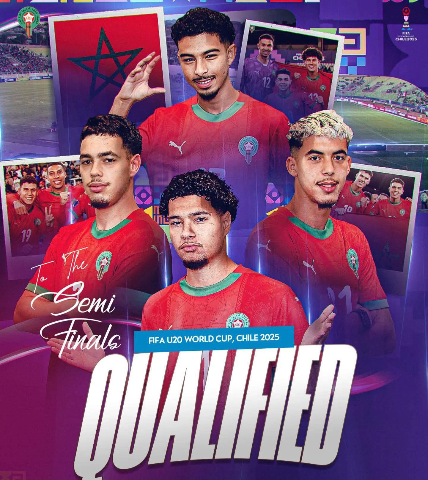 تأهل المنتخب الوطني المغربي للشبان تحت 20 سنة إلى نصف نهائي كأس العالم للشباب بعد تغلبه على نظيره الأمريكي بنتيجة 3-1 في المباراة التي أجريت بينهما مساء الأحد على أرضية ملعب “إل تينينتي” بمدينة رانكاغوا ضمن منافسات دور ربع نهائي البطولة العالمية المقامة حاليا في دولة تشيلي.
