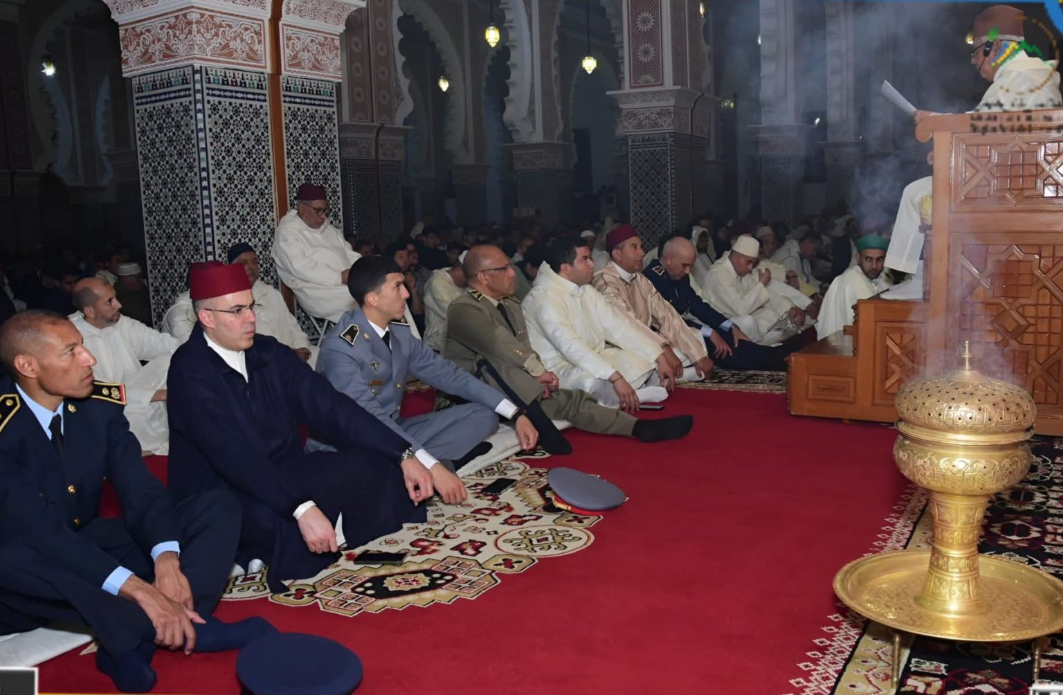 وقبل أداء صلاتي العشاء والتراويح، استمع المصلون إلى موعظة دينية تناولت فضل ليلة القدر ومكانتها العظيمة لدى المسلمين عموماً ولدى المغاربة على وجه الخصوص، أعقبتها حصة ختم صحيح البخاري.