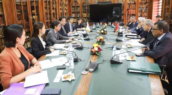 وتم خلال المناقشات بين الجانبين، التطرق لإمكانية دعمِ بنك اليابان للتعاون الدولي للشركات اليابانية لإنجاز المشاريع بالمغرب بشراكة مع الشركات الوطنية، وبالأخص في المجالات المتعلقة بتحلية مياه البحر، وإعادة استعمال المياه العادمة المعالجة، وكذا الموانئ ونقل الهيدروجين الأخضر.