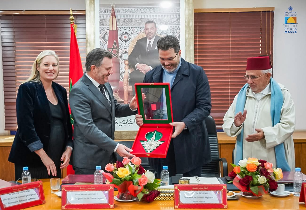 في أجواء اتسمت بروح الانفتاح والتعاون، ترأس رئيس مجلس جهة سوس ماسة، السيد كريم أشنكلي، اليوم الجمعة، لقاء رفيع المستوى جمع وفدا فرنسيا يضم القنصلة العامة لفرنسا بأكادير، السيدة بياتريس ليدرلي، وممثل غرفة التجارة الفرنسية، ورئيس المصلحة الاقتصادية الجهوية بسفارة فرنسا بالمغرب ونائبه، إلى جانب ممثلي عدد من المؤسسات الجهوية، خصص لتدارس الآفاق الواعدة للاستثمار على صعيد الجهة.