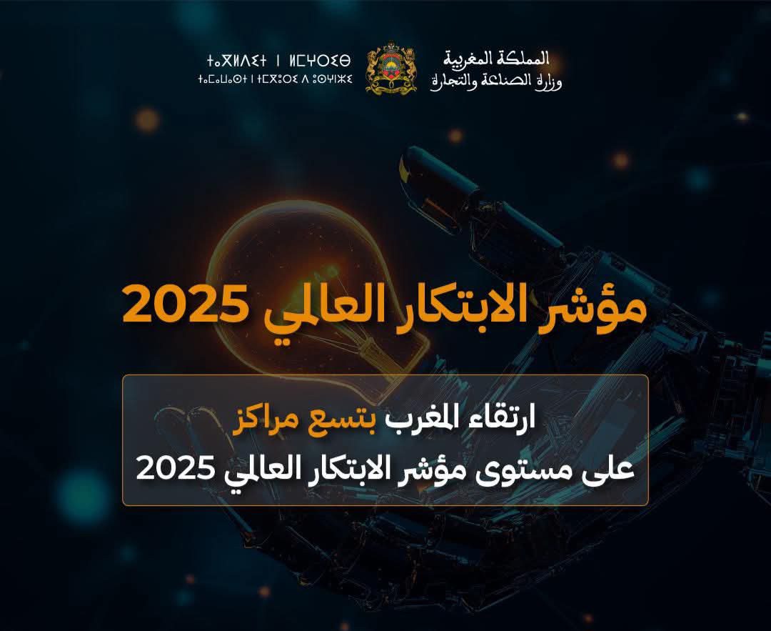 ارتقى المغرب من المرتبة 66 إلى المرتبة 57 عالميا ضمن 139 اقتصادا تم تقييمهم، لينضم إلى قائمة أفضل 60 دولة في مؤشر الابتكار العالمي لسنة 2025، متقدما بتسعة مراكز، ومحققا بذلك أعلى تصنيف له حتى الآن.