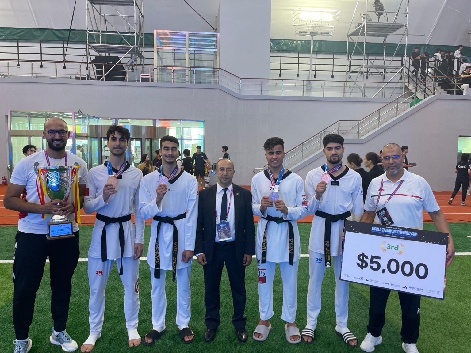 تمكن المنتخب الوطني المغربي للتايكوندو من انتزاع الرتبة الثالثة لفئة الذكور خلال مشاركته ضمن كأس العالم للفرق التي انطلقت منافساتها اليوم الإثنين فاتح يوليوز 2024 وتستمر إلى غاية 04 منه بمدينة تشونغتشونغ بكوريا الجنوبية وذلك وفق نظام الفرق للذكور والإناث وكذا الفريق المختلط ، حيث كان الفريق المغربي يتكون من كل من أيمن كنون و هيثم الزغوطي وأحمد بن البكرية وأيوب اليقيني .