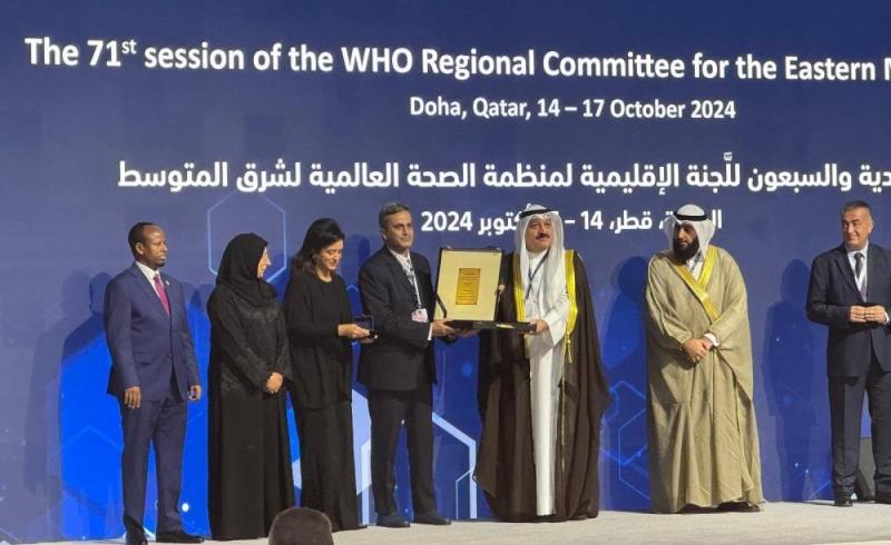 وتميز حفل الافتتاح بمنح جائزة الكويت لمكافحة السرطان والامراض القلبية الوعائية والسكري في إقليم شرق المتوسط .