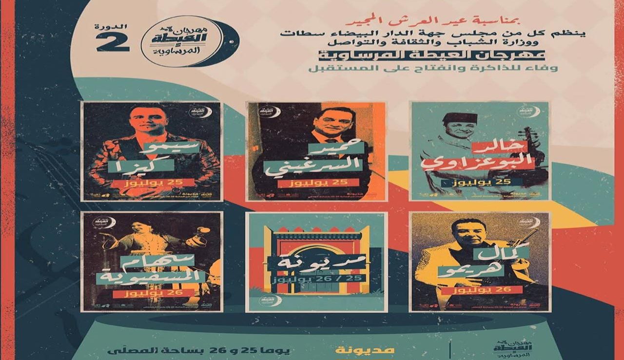 واختار المنظمون للدورة شعار “وفاء للذاكرة وانفتاح على المستقبل”، إذ يروم المهرجان إعادة الاعتبار لنمط العيطة المرساوية الذي نشأ وترعرع بمنطقة البيضاء وأحوازها بالشاوية، وصولا إلى قبائل دكالة، من خلال ست سهرات مفتوحة في وجه العموم وندوات ومسابقات لاكتشاف المواهب، فضلا عن احتفاءات وتكريمات ومفاجآت أخرى.