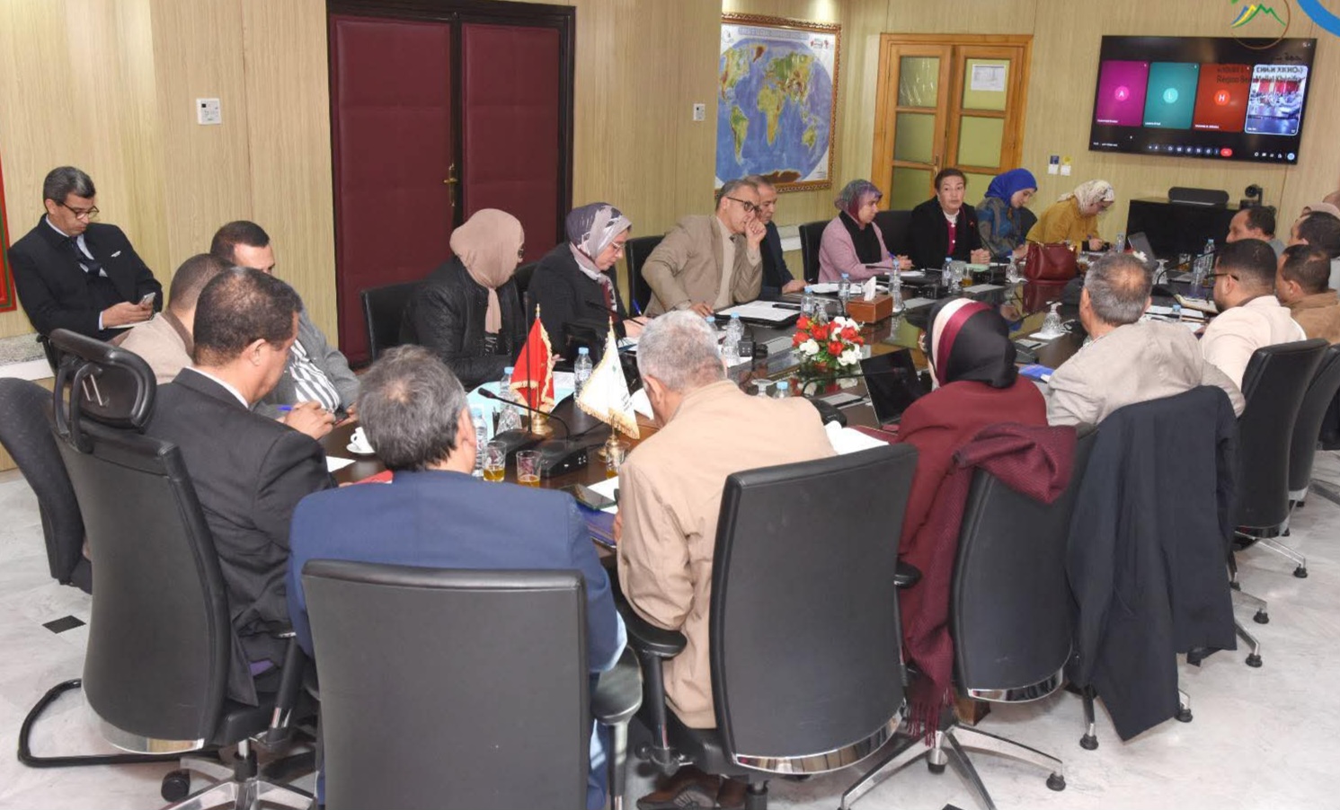 كما حضر هذا الاجتماع الذي انعقد بالتوازي حضوريا وعن بعد كل من السيدات والسادة اعضاء اللجنتين ورؤساء اللجان الدائمة والفرق بالجهة، وبعض أعضاء المجلس، وممثلي المصالح اللاممركزة المهنية بقطاع الفلاحة والماء والاقتصاد الاجتماعي والتضامني، وأطر مجلس الجهة.