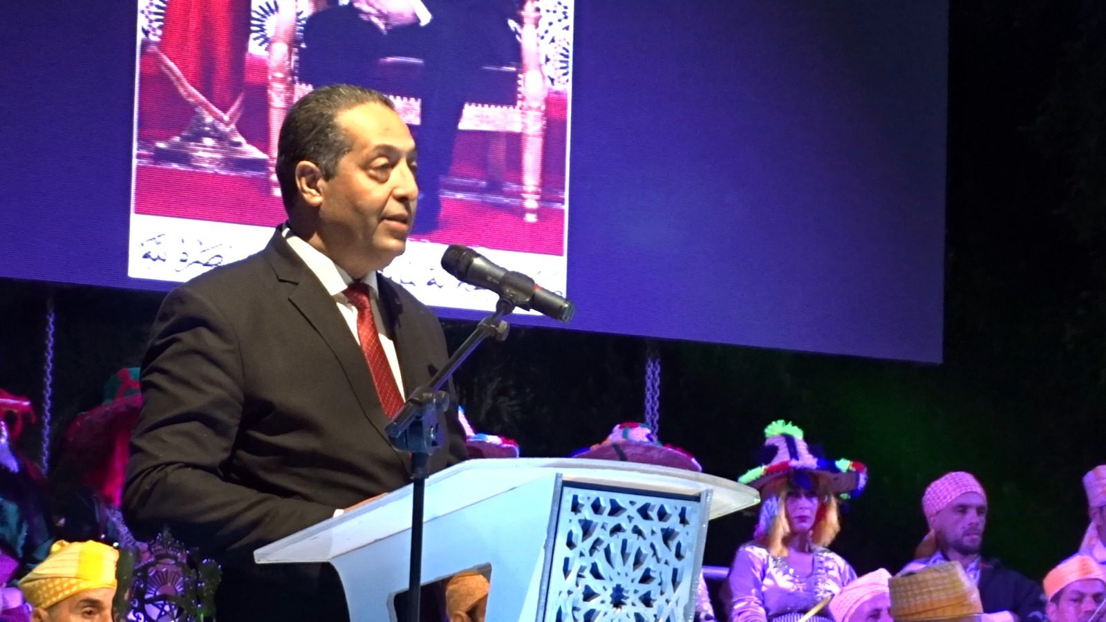وترأس مراسيم هذا الافتتاح السيد سيدي صالح داحا عامل إقليم تاونات،إلى جانب السيدة خديجة أدرية نائبة رئيس مجلس جهة فاس مكناس، المكلفة بالتنمية الثقافية والتراث، والسيد فؤاد مهداوي المدير الجهوي لقطاع الثقافة والسيد محمد السلاسي رئيس المجلس الاقليمي لتاونات،بحضور فعاليات مدنية وعسكرية ومنتخبة، الى جانب أيضا حضور أطر العمالة ومجلس جهة فاس مكناس وجماعة تاونات والمجلس الاقليمي لتاونات،وبعض من أطر مديرية الثقافة والسلطة المحلية والوقاية المدنية وعناصر الامن وعمال النظافة (جنود الخفاء الساهرين على مرور فعاليات المهرجان في ظروف جيدة).