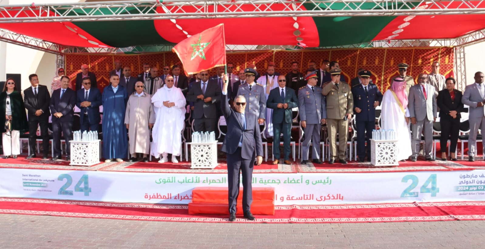 أسدل الستار صباح يوم الأحد 03 نونبر 2024، على الدورة الـ 24 لنصف ماراطون العيون الدولي، الذي ينظم تحت الرعاية السامية لصاحب الجلالة الملك محمد السادس نصره الله، وذلك في إطار الإحتفالات المخلدة للذكرى التاسعة والأربعون للمسيرة الخضراء المظفرة، من طرف نادي شباب الساقية الحمراء لألعاب القوى تحت إشراف الجامعة الملكية المغربية لألعاب القوى وعصبة جهة العيون – الساقية الحمراء ودعم العديد من الشركاء، بمشاركة عدائين وعداءات من عدة دول بالإضافة إلى أبرز العدائين المغاربة، والذي أعطى إنطلاقته السيد عبد السلام بكرات والي جهة العيون – الساقية الحمراء، وبحضور السادة رئيس المجلس الجماعي للعيون والعصبة الجهوية العيون – الساقية الحمراء لألعاب القوى حمدي ولد الرشيد و رئيس مجلس جهة العيون – الساقية الحمراء حمدي ولد الرشيد و والي الأمن الحسن أبو الذهب ورئيس المجلس الإقليمي للعيون مولود علوات ورؤساء الجماعات القروية والمصالح العسكرية والمدنية وممثلي الجامعة الملكية المغربية لألعاب القوى.