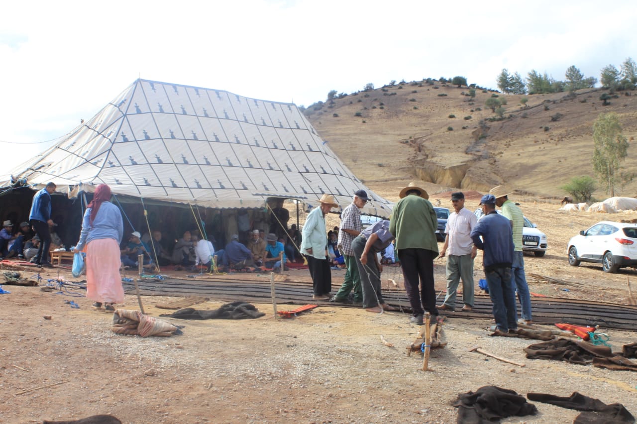 نظم الشرفاء الأدارسة بزاوية أيت عضى بدوار أيت أمناصف جماعة أيت إيكو إقليم الخميسات يوم الأحد 13 أكتوبر الجاري، عادة تاريخية تتمثل في صيانة وخياطة خيمتهم الزاوية التاريخية الموروثة عن أجدادهم بحضور مجموعة من الشرفاء والشريفات والمردين والمريدات والزوار، إحياء للذكرى المئوية لتأسيس الزاوية الإدريسية لأبناء بنو عضى.