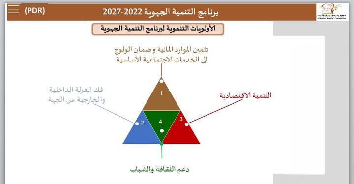 يعتبر مجلس جهة درعة تافيلالت، بناء على تشخيص حاجيات وإمكانيات الجهة الواردة في برنامج التنمية الجهوية 2022-2027، المصادق عليه في دورة مارس 2022 و المؤشر عليه من طرف وزارة الداخلية في أكتوبر 2023،أن من أولويات التنمية تثمين الموارد المائية وضمان الولوج إلى الخدمات الاجتماعية الأساسية و فك العزلة الخارجية والتنمية الاقتصادية ودعم الثقافة والشباب.