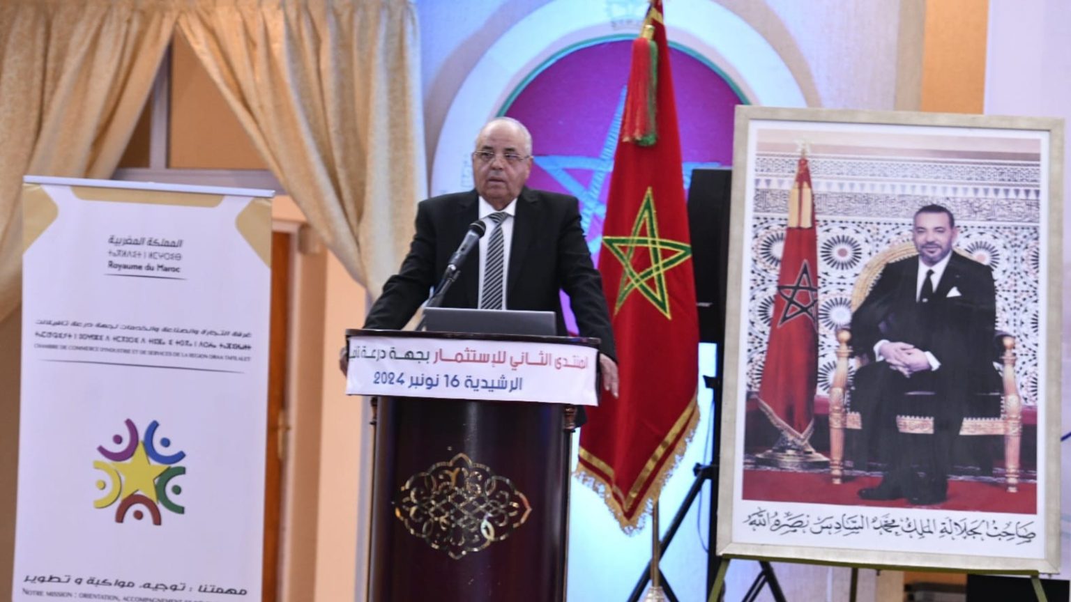 شارك، رئيس مجلس جهة درعة تافيلالت، السيد اهرو أبرو، اليوم السبت، في افتتاح فعاليات المنتدى الثاني للاستثمار بجهة درعة تافيلالت، المنظم من طرف غرفة التجارة والصناعة والخدمات لجهة درعة تافيلالت بشراكة مع ولاية جهة درعة تافيلالت و مجلس جهة درعة تافيلالت والمركز الجهوي للاستثمار والمديرية الجهوية للصناعة والتجارة و الاتحاد العام لمقاولات المغرب و المجلس الجماعي للرشيدية و تعاون مع عدد من المؤسسات التمويلية بالجهة، بقاعة فلسطين الكبرى بالرشيدية.