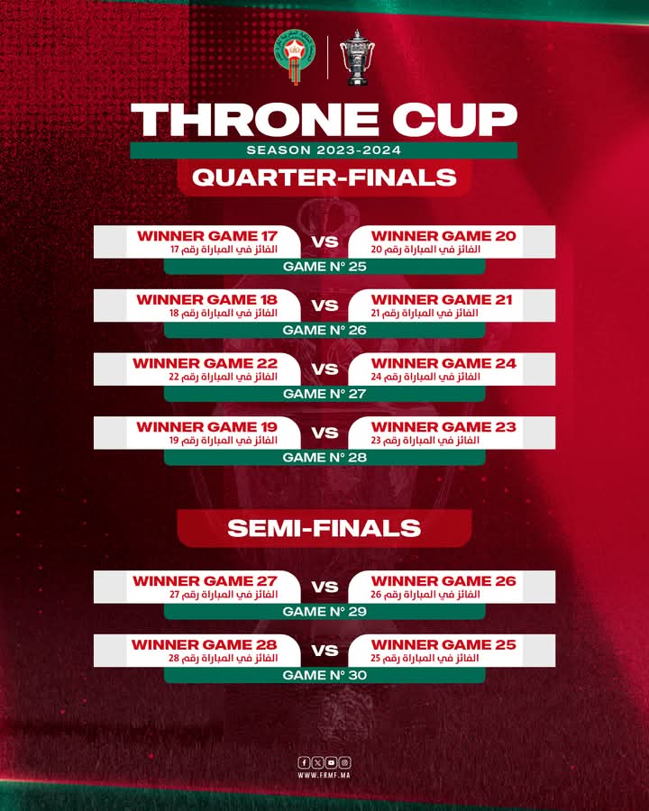 وفي ما يلي النتائج الكاملة للقرعة إلى غاية نصف النهائي: