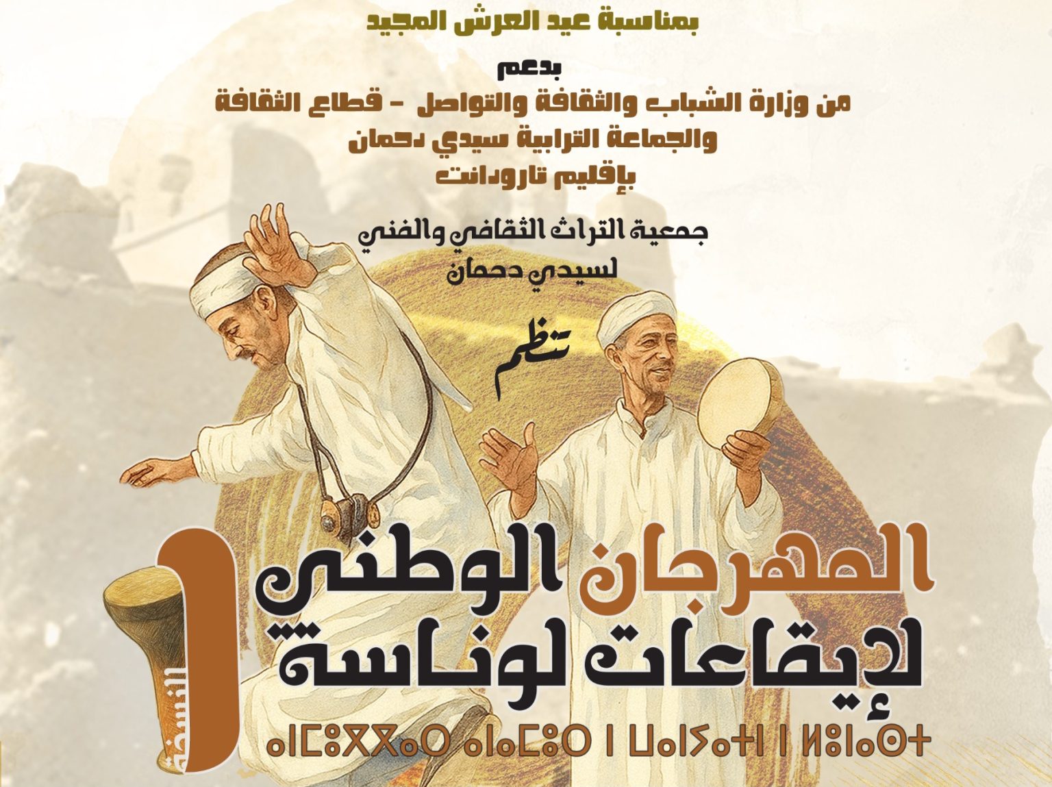 اختارت جمعية التراث الثقافي والفني بسيدي دحمان، تخليد ذكرى عيد العرش المجيد، من خلال إعلان ولادة مهرجان ايقاعات لونسة، في دورته الاولى، بدعم من وزارة الشباب والثقافة والتواصل –قطاع الثقافة-، والجماعة الترابية لسيدي دحمان، وذلك تحت شعار: “فن لوناسة عمق التراث الوطني الأصيل” وذلك أيام 26 – 27 يوليوز 2025 بسيدي دحمان، بإقليم تارودانت.
