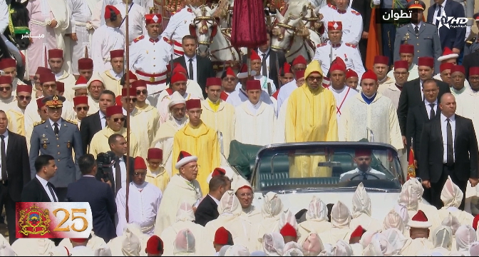 وشكل هذا الحفل البهيج، الذي يتوج الاحتفالات المخلدة للذكرى الخامسة والعشرين لتربع صاحب الجلالة الملك محمد السادس، أيده الله، على عرش أسلافه الميامين، مناسبة لممثلي الجهات الاثنتي عشر للمملكة، لتجديد تشبثهم بشخص جلالة الملك وبأهداب العرش العلوي المجيد، وللتأكيد من جديد، على أن الصلة التي تجمع العرش بالشعب تظل متجذرة في عمق تاريخ البلاد وتشكل على الدوام الأساس المتين للأمة المغربية والتعبير الأسمى عن مدى تماسكها واستمراريتها.
