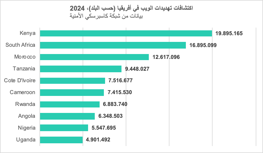وتصدّرت كينيا قائمة الدول من حيث عدد الهجمات المكتشفة، حيث تم رصد نحو 20 مليون محاولة هجوم، تلتها جنوب إفريقيا بـ17 مليوناً، ثم المغرب بـ12.6 مليون محاولة. وتشكل هذه الأرقام مؤشراً على توسع رقعة الهجمات السيبرانية، وارتفاع معدلات استهداف البنى التحتية الرقمية في البلدان الإفريقية.