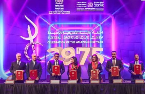 احتضن،اليوم الثلاثاء، مسرح محمد الخامس احتفالا رسميا بمناسبة السنة الأمازيغية الجديدة 2975، بحضور رئيس الحكومة، السيد عزيز أخنوش، والمستشار الملكي، السيد أندري أزولاي، ورئيس النيابة العامة، السيد لحسن الداكي،رئيس الحكومة عزيز أخنوش، ووزير الشباب والثقافة والتواصل المهدي بنسعيد والوزيرة المنتدبة المكلفة بالانتقال الرقمي وإصلاح الإدارة،أمل الفلاح السغروشني ،وعدد من الوزراء والسفراء.
