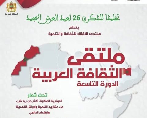 ينظم منتدى الآفاق للثقافة والتنمية بمدينة خريبكة، فعاليات الدورة التاسعة لملتقى الثقافة العربية من 4 إلى 7 غشت 2025، تخليدا للذكرى السادسة والعشرين لعيد العرش المجيد.