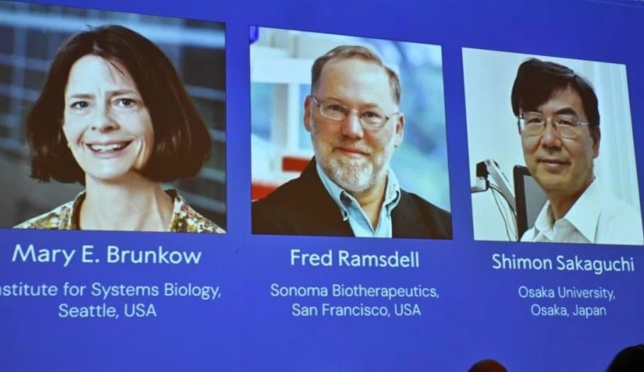 مُنحت جائزة نوبل في الطب لعام 2025، الاثنين، للباحثين الأمريكيين ماري إي. برونكو وفريد رامسديل، والعالم الياباني شيمون ساكاغوتشي، تقديرا لأبحاثهم حول كيفية تحكم الجسم في الجهاز المناعي.