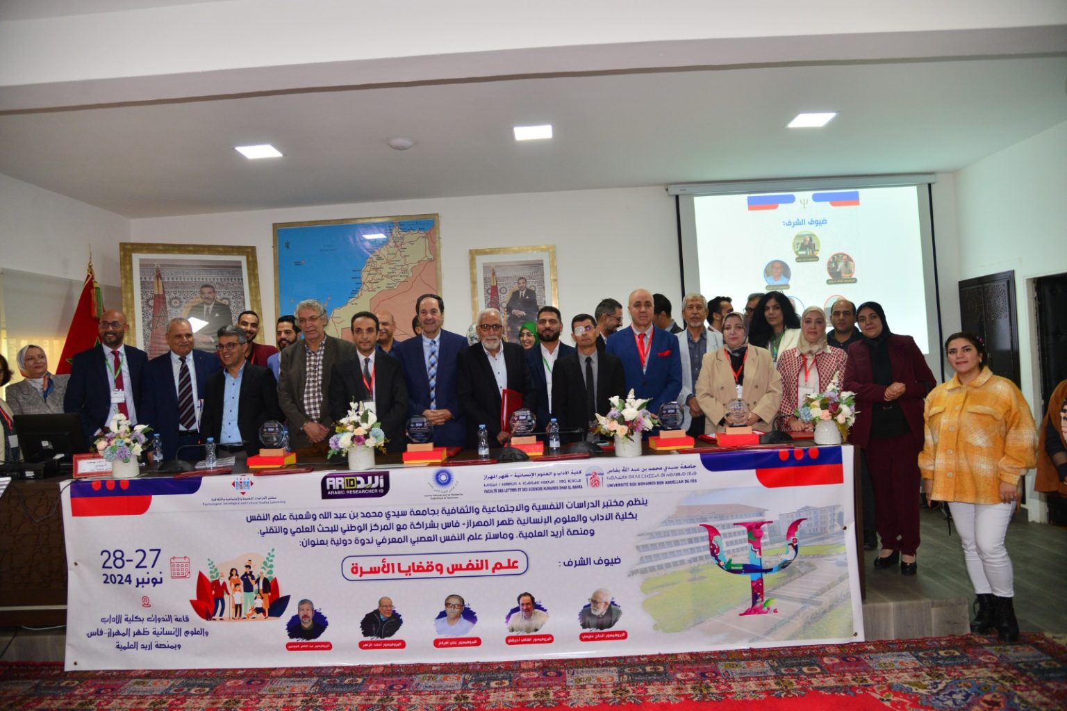نظم مختبر الدراسات النفسية والاجتماعية والثقافية بجامعة سيدي محمد بن عبد الله، وشعبة علم النفس بكلية الآداب والعلوم الإنسانية ظهر المهراز- فاس بشراكة مع المركز الوطني للبحث العلمي والتقني، ومنصة أريد العلمية، وماستر علم النفس العصبي المعرفي الندوة الدولية الموسومة بـــــ: “علم النفس وقضايا الأسرة”، وذلك تحت الإشراف العامّ للأستاذ عبد الله الإدريسي، يومي الأربعاء والخميس 27 و28 نونبر 2024. تضمنت الندوة عشر جلسات علمية: جلستان عن بعد وثمان جلسات حضورية.