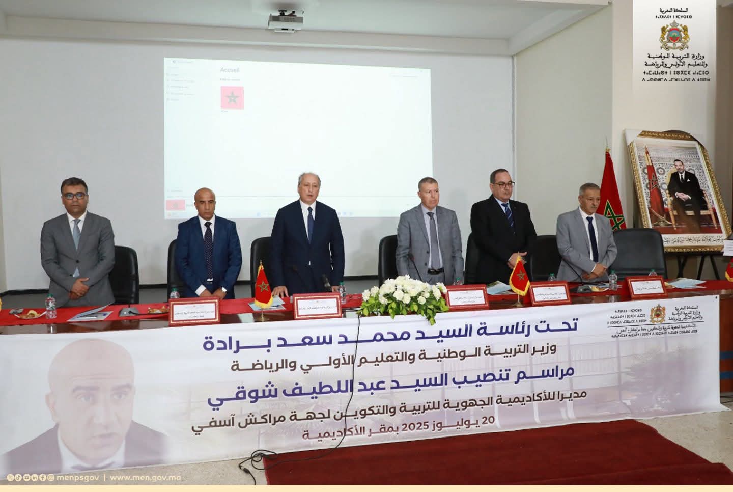 ترأس السيد محمد سعد برادة، وزير التربية الوطنية والتعليم الأولي والرياضة، يوم الأحد 20 يوليوز 2025 بمدينة مراكش، مراسم تنصيب السيد عبد اللطيف شوقي مديرا للأكاديمية الجهوية للتربية والتكوين لجهة مراكش آسفي، وذلك على إثر مصادقة المجلس الحكومي، المنعقد يوم 10 يوليوز 2025 على مقترح تعيينه.