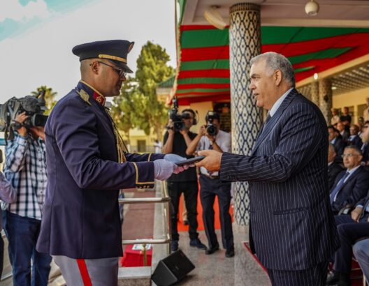 وذكر بلاغ لوزارة الداخلية أنه تخللت هذا الحفل مراسم توزيع الشهادات على المتفوقين، وكذا تقديم استعراض عسكري من طرف المتخرجين.