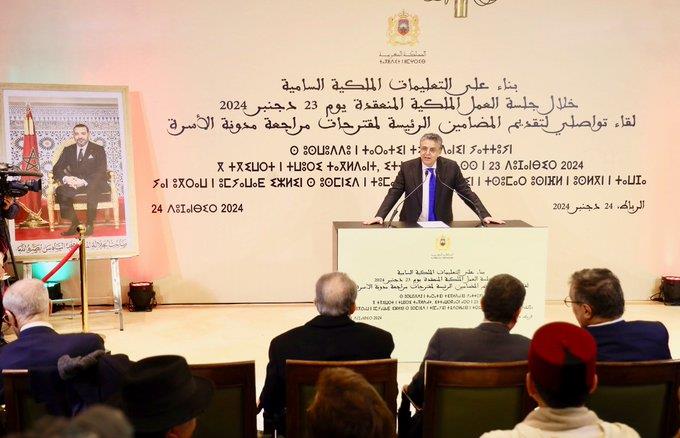 بتوجيه من صاحب الجلالة الملك محمد السادس، خلال جلسة العمل، التي ترأسها جلالته، المنعقدة الإثنين، والمتعلقة بموضوع ورش مراجعة مدونة الأسرة، قدم وزير العدل، عبد اللطيف وهبي، اليوم الثلاثاء، خلال لقاء تواصلي بالرباط ، الخطوط العريضة لما تحقق في موضوع مراجعة قانون الأسرة، بعد اكتمال مسار الاستشارات الواسعة التي أشرفت عليها الهيئة المكلفة بمراجعة مدونة الأسرة، وفي أعقاب إبداء المجلس العلمي الأعلى لرأيه الشرعي، بخصوص بعض مقترحات الهيئة المرتبطة بنصوص دينية قطعية.
