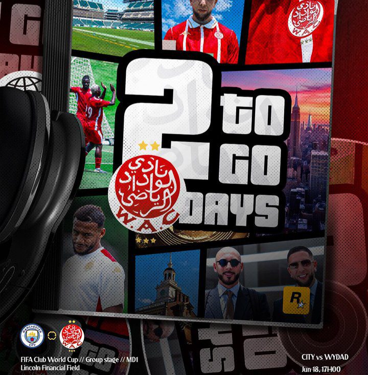 يواجه فريق الوداد الرياضي، نظيره مانشستر سيتي في الظهور الأول للفريق الأحمر بمونديال الأندية الذي تحتضنه ملاعب الولايات المتحدة الأمريكة.