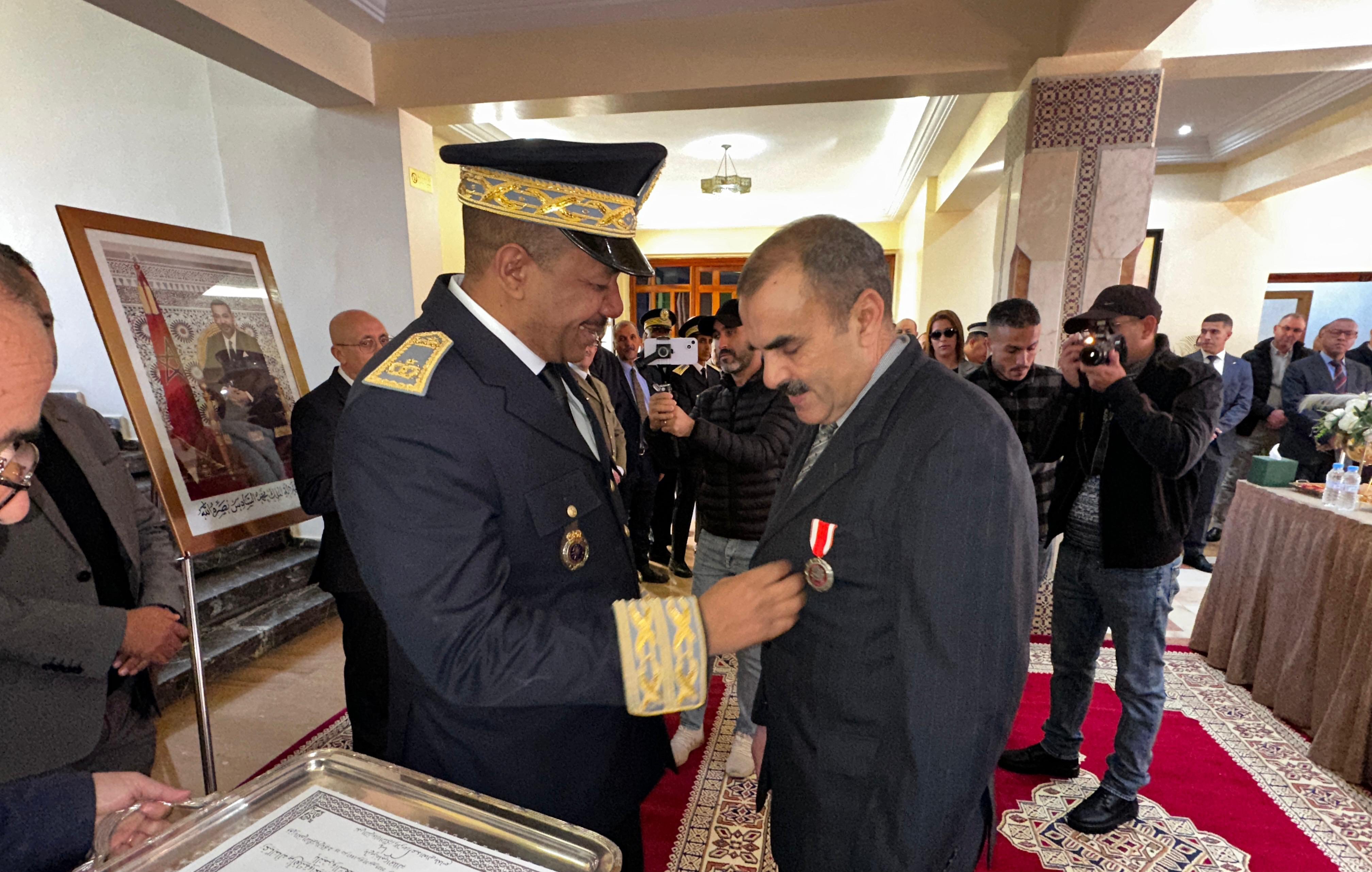 وبعد ذلك، أشرف السيد عامل الإقليم على حفل توشيح موظفين منعم عليهما بوسامين ملكيين شريفين بمناسبة ذكرى عيد العرش المجيد لسنة 2025، تقديرا لهما على الخدمات الجليلة التي أسدياها للإدارة طيلة مشوارهما الإداري، وذلك تجسيدا للعناية المولوية السامية التي يوليها صاحب الجلالة الملك محمد السادس أيده الله ونصره لمختلف فئات الموظفين والأطر العاملين بالإدارات العمومية والجماعات الترابية عبر ربوع المملكة.