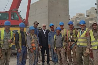 السيد نزار بركة يقوم بزيارة تفقدية لورش تمديد الحاجز الرئيسي مولاي يوسف بميناء الدار البيضاء.