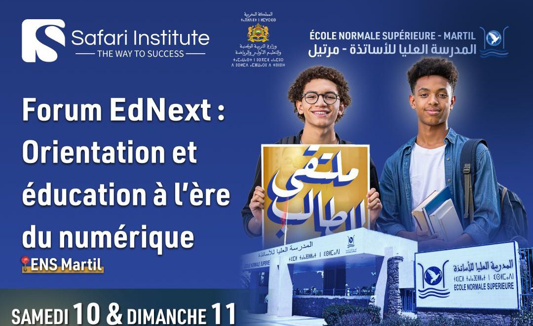 تعلن مؤسسة سفاري، وهي مؤسسة تربوية مرجعية بجهة طنجة-تطوان، عن تنظيم الدورة الأولى من منتدى EDNEXT 2025، وذلك يومي 10 و11 ماي بالمدرسة العليا للأساتذة بتطوان (مارتيل). ويعد هذا الحدث التربوي الأول من نوعه على الصعيد الوطني، ويهدف إلى فتح نقاش موسع حول مستقبل التوجيه والتعلم في ظل التحولات الرقمية المتسارعة.